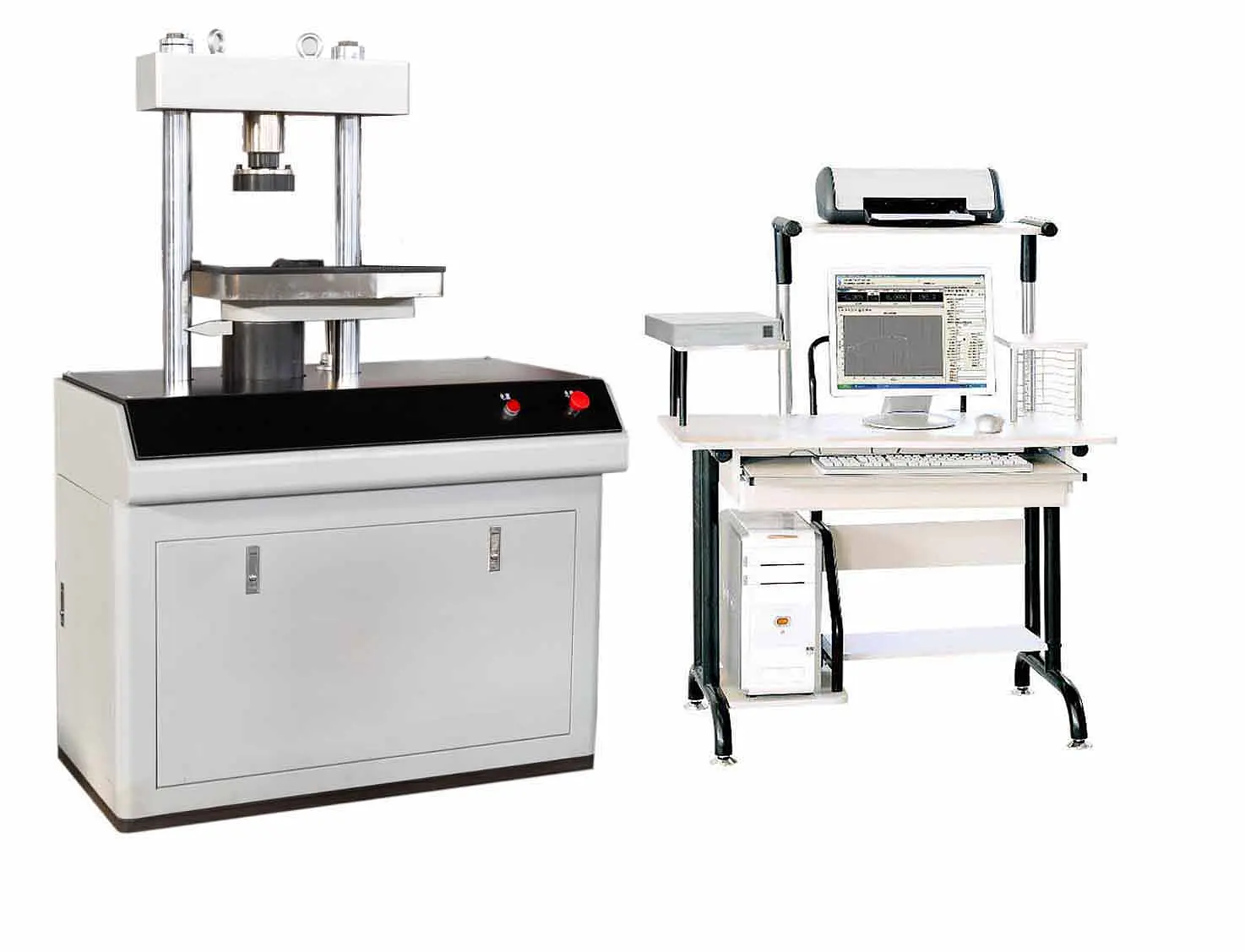 The compression testing machine adopt computer auto control, with constant test speed, constant stress, test force keeping and other control mode. The computer realize test data and test curve display, save,manage function, can print test report. With special fixtures, can test other material compression and flexual testing.